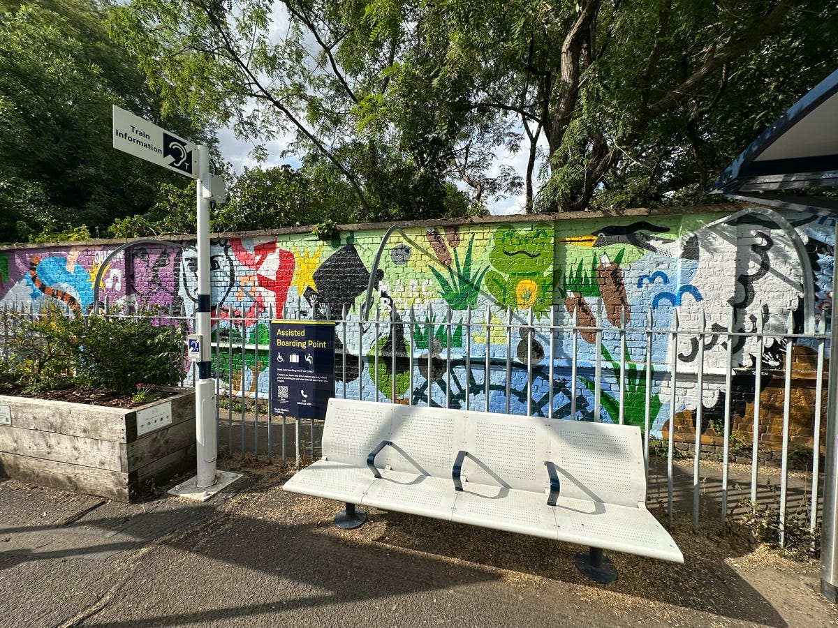 The new mural at Barnes Railway Station. Transport terminals are all too often grim. Not in this case