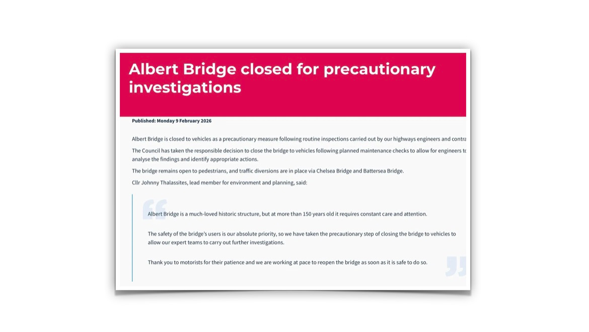 Or the business case for restoring Albert Bridge is stronger than the one for Hammersmith Bridge, so funding is only provided for the Chelsea.