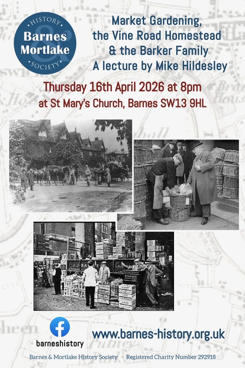 Mike Hildesley enteritained a typically large History Sociey audience at St Mary’s with his talk on market gardening and Barnes.