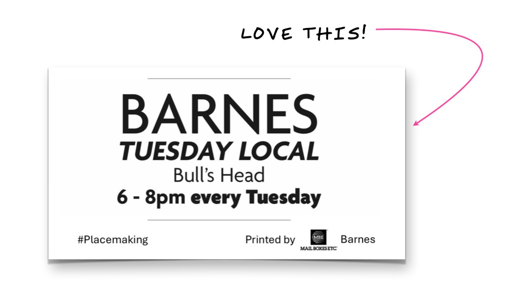 The initiative has been set up by the BCA Placemaking Barnes Group, as part of a wider effort to strengthen community ties, support local businesses and strengthen placemaking in Barnes. Such initiatives have proved popular and successful elsewhere.