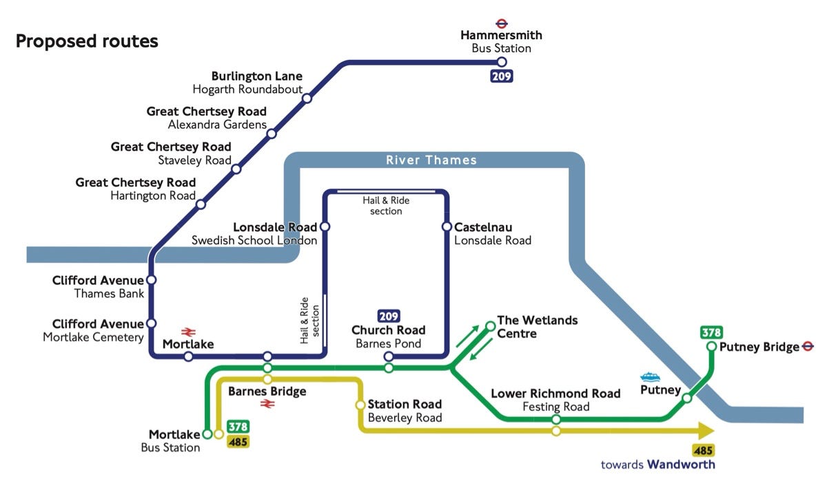 We are proposing changes to route 209, 378 and 485, and to no longer run route 533, which was introduced as a temporary measure following the dosure of Hammersmith Bridge to vehicles in 2019.