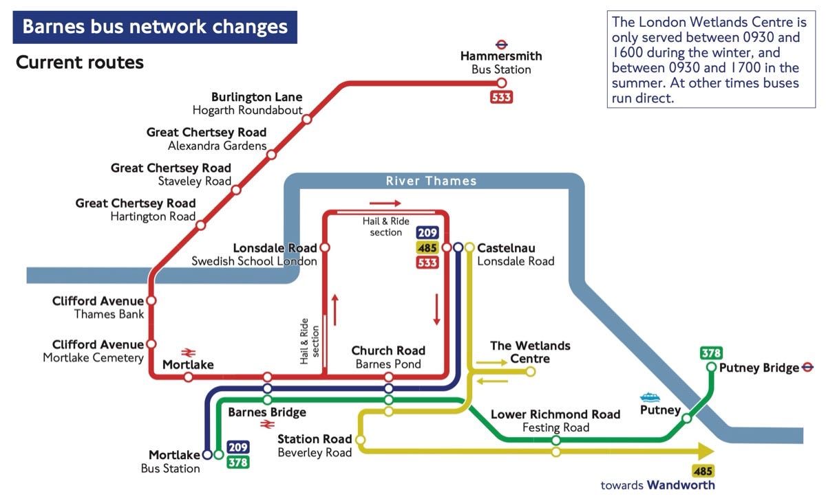 The overall reduction in bus services to Barnes is not ideal, given ongoing disruption from the Hammersmith Bridge closure and people needed to travel be connected.