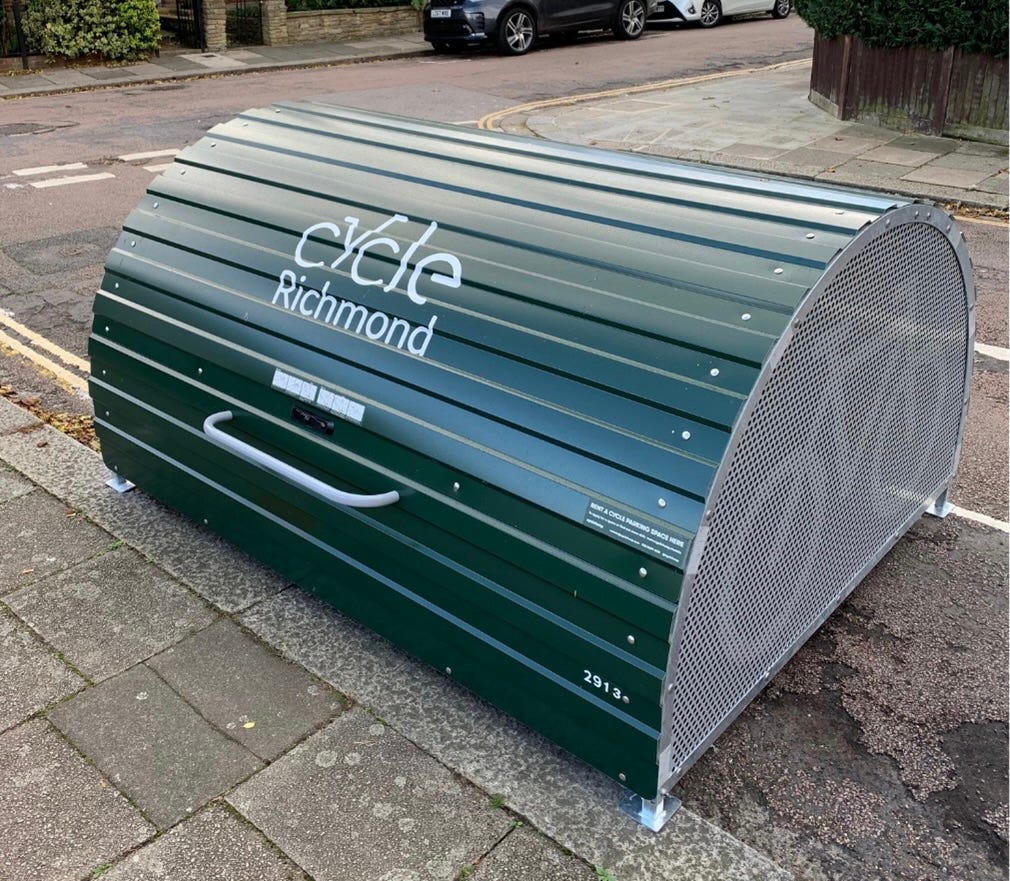 My response to the council’s draft Transport Strategy included a suggestion for more bike hangars in the borough. Like many in this part of Barnes, we have no rear access to our home. No hangar means hauling the bike through the house. Every time. Not good.