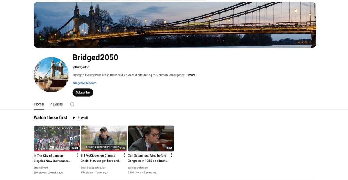 The new Bridged2050 YouTube channel meets that ambition. It draws on the extraordinary range of information, insight, and storytelling already available on the platform and uses it to support the mission: living better while addressing the climate emergency