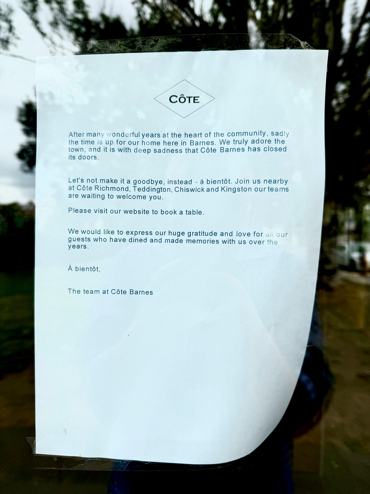That makes Côte’s closure all the more striking. It’s a prime site in a prime location.