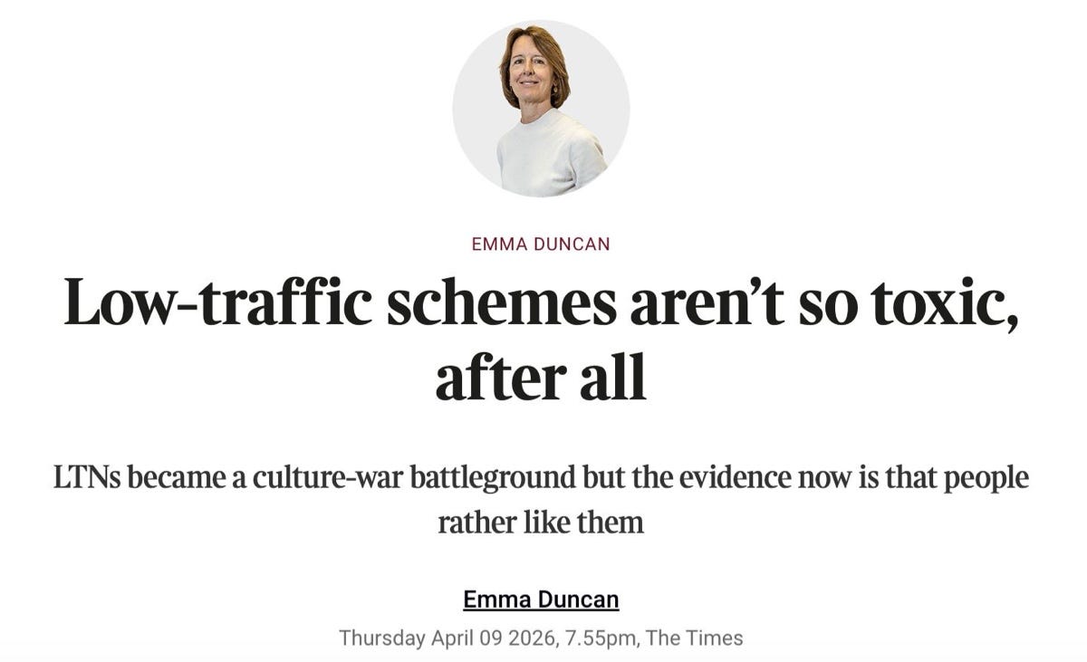 Low traffic neighbourhoods (LTNs) became a culture-war battleground but the evidence now is that people rather like them (££ Paywall), says Times columnist Emma Duncan.