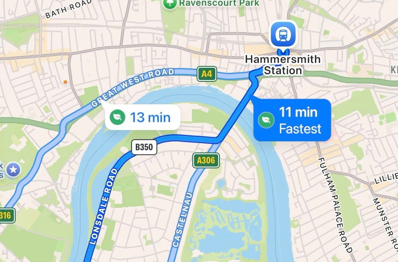 According to Apple Maps, the quickest way by car from White Hart Lane to Hammersmith Station was… across Hammersmith Bridge.