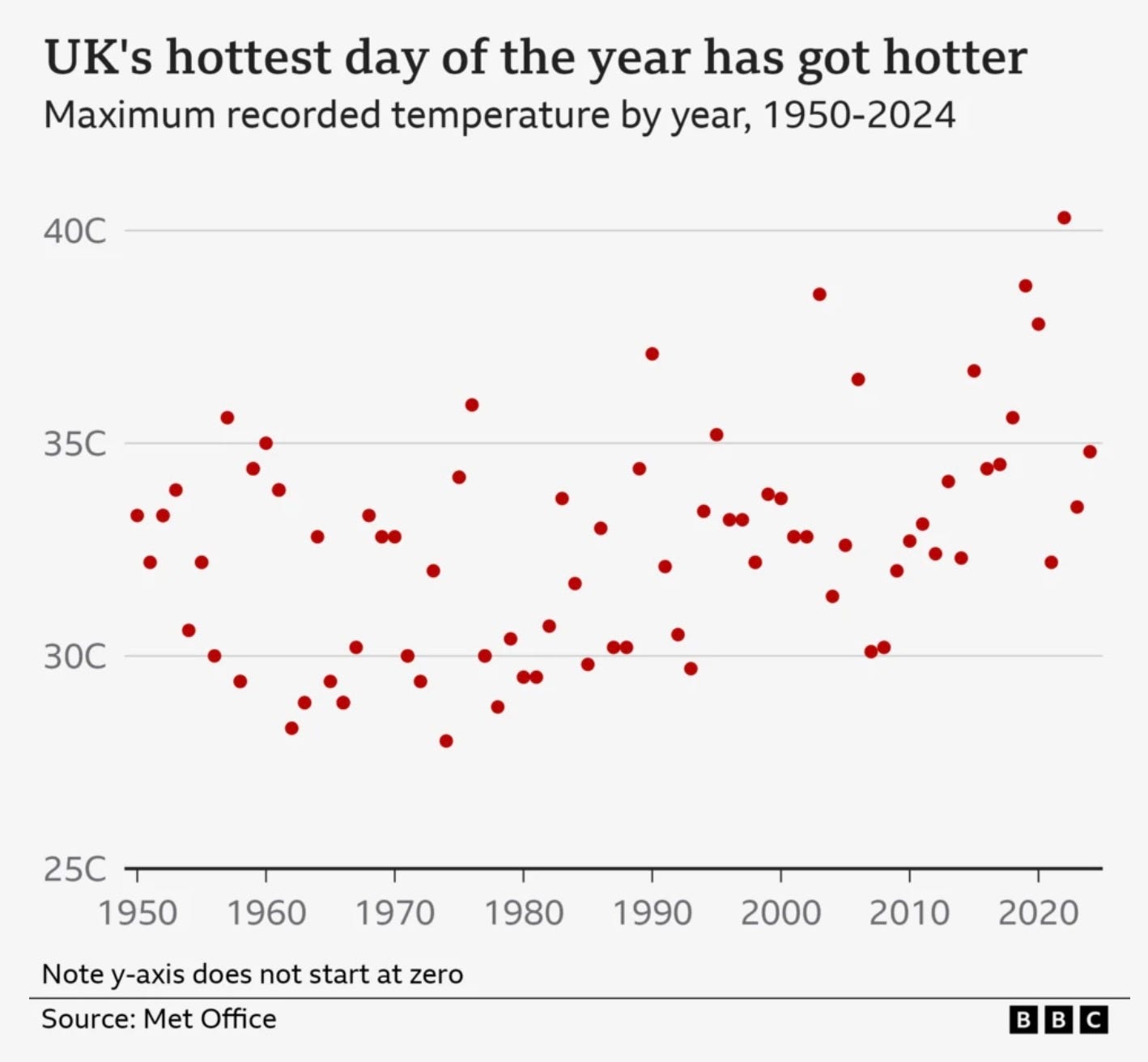 Once again the unusually hot weather has prompted two climate claims. I have heard both today.
