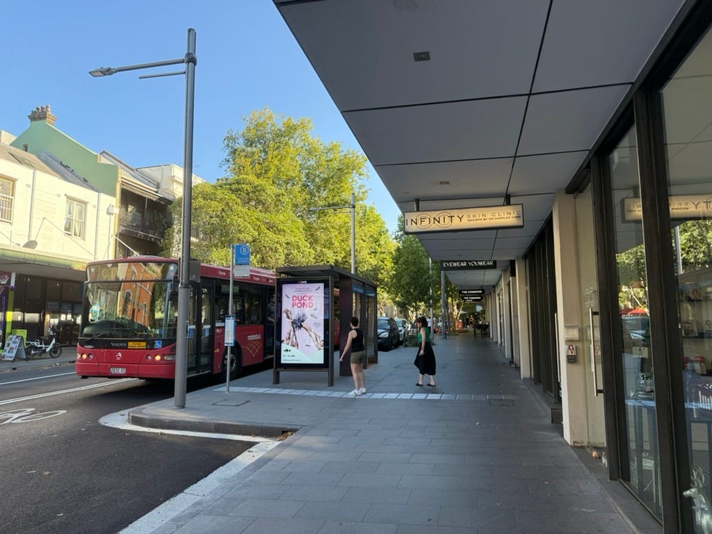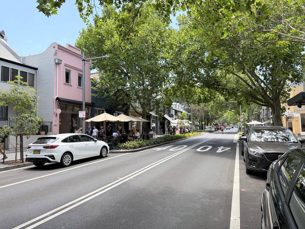 Pedestrian crossings are strictly policed — what Americans would call jaywalking is an offence. Compliance is high in inner suburbs like Surry Hills and Kings Cross. But the design is unforgiving.