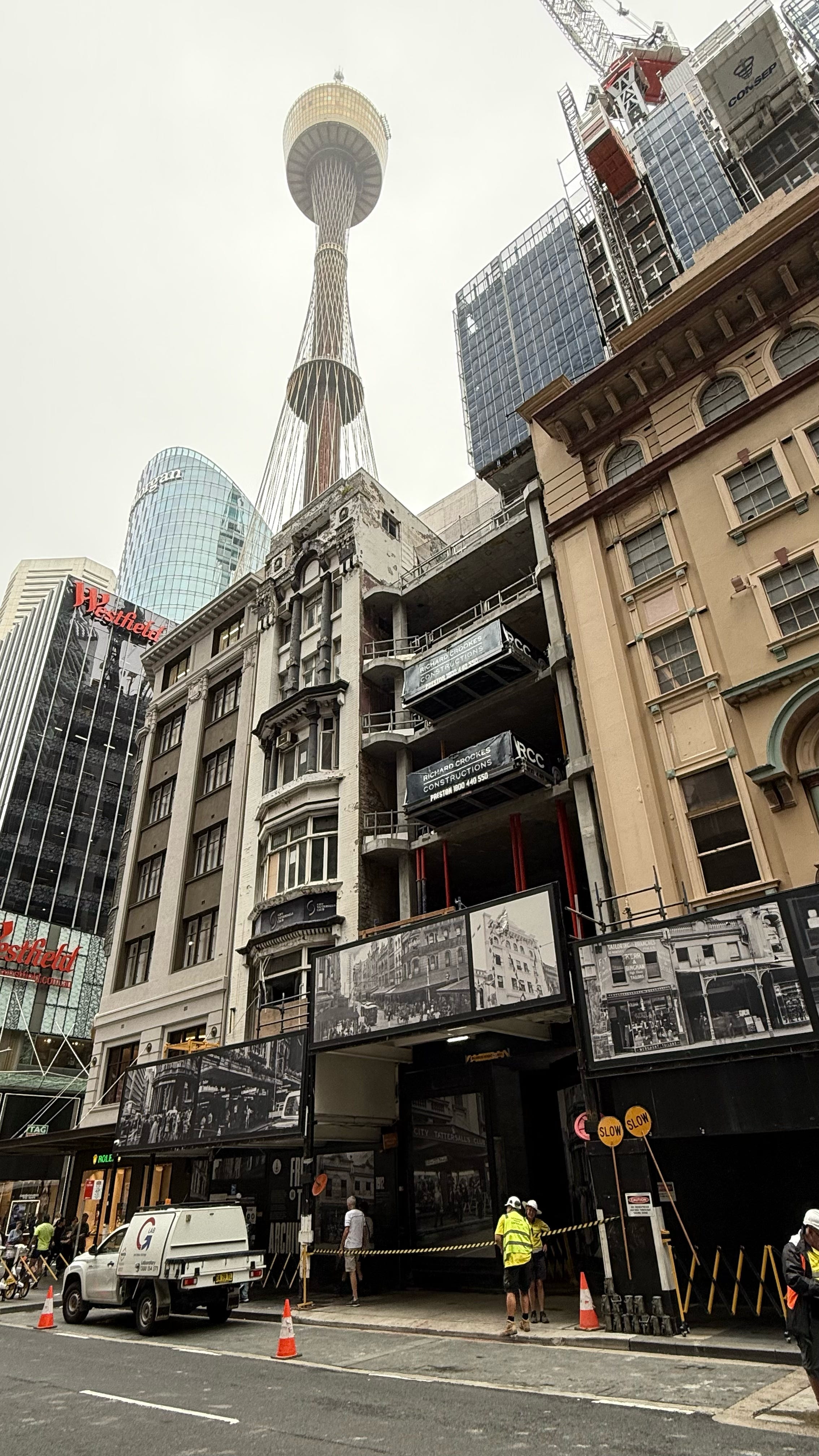 Sydney rebuilds constantly. What stands out is how construction sites relate to the streets. These photo billboards were striking and common.