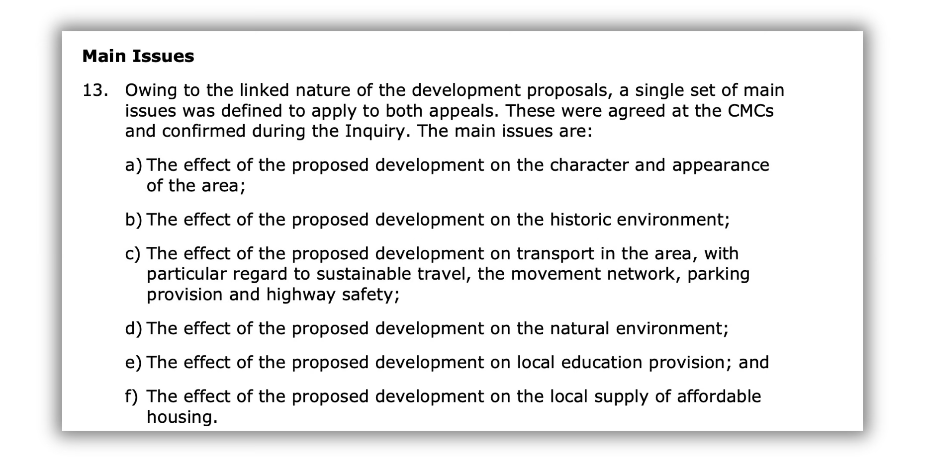The Inspector’s response to the transport challenges provides a good sense of the overall approach.