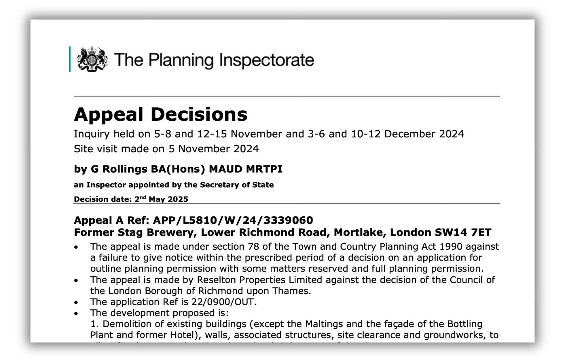 The Planning Inspectorate began its enquiry in November 2024 collecting evidence from stakeholders from across London including Mortlake Brewery Campaign Group (MBCG) and Greater London Authority. In all there were over 1,000 objections to the two schemes - one for the new homes and the other for the school.
