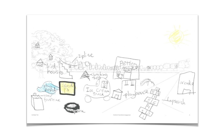 My favourite moment in the report is not a chart. It’s this child’s drawing on page 44. A zipline, a petting zoo, a playhouse: the hopes of someone quietly redesigning the Green into a place they’d actually want to be.